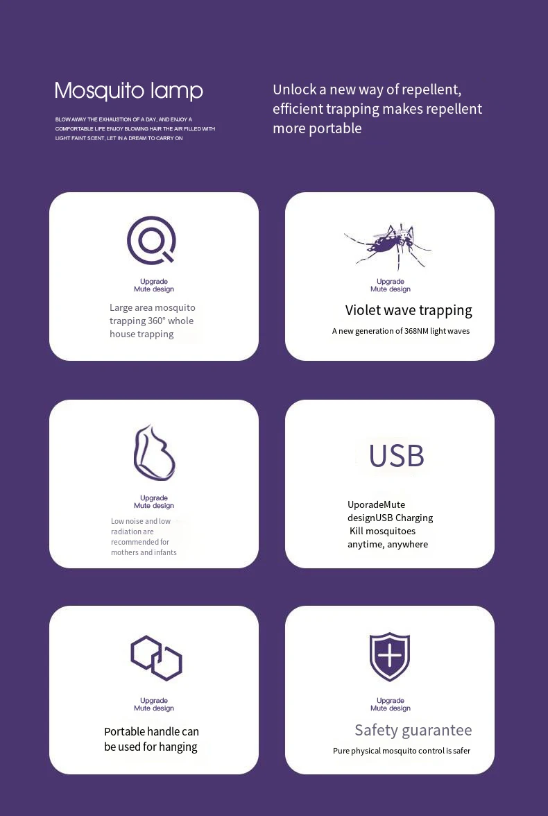 Mosquito Killer Mosquito Trap Indoor Portable USB Electronic Rechargeable Mosquito Killer Lamp/Bug Zapper for Summer Trip